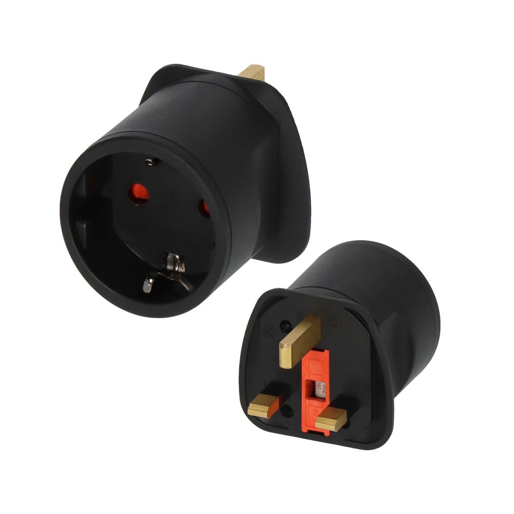 Αντάπτορας πρίζας με υποδοχή Type F, η οποία είναι συμβατή με βύσματα στην Ελλάδα, Γερμανία, Ιταλία, Ισπανία, Τουρκία και Ρωσία και έξοδο Type G, η οποία είναι συμβατή με πρίζες στην Βρετανία και Ιρλανδία.