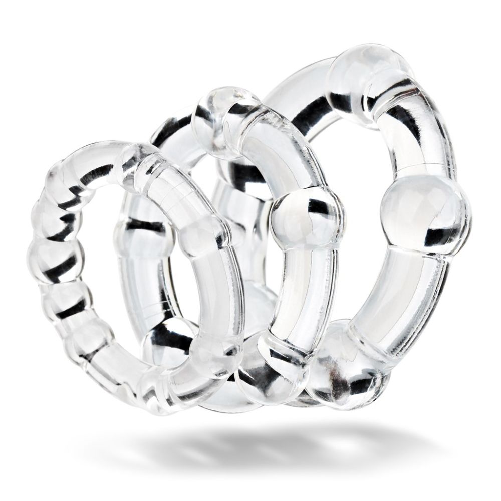 Σετ 3 πέους δαχτυλίδια κατασκευασμένα σε διάφανο χρώμα, μειώνει την πρόωρη εκσπερμάτωση! κιτ φαλλικού δακτυλίου πέους. αποτελείται από 3 δακτυλίους διαφορετικών διαμέτρων. Μπορείτε να χρησιμοποιήσετε τα δαχτυλίδια μεμονωμένα ή σε συνδυασμό. Συσκευασία 3 τεμαχίων διαφορετικών μεγεθών. • Για σούπερ στύση • Μπορεί να βοηθήσει στην καθυστέρηση της εκσπερμάτωσης • Διατίθεται σε 3 μεγέθη. Χρησιμοποιήστε μόνο ένα δαχτυλίδι ή και τα τρία ταυτόχρονα! • Μικρός δακτύλιος: μέγιστες στύσεις • Μεσαίο δακτύλιο: σταθερές στύσεις • Μεγάλος δακτύλιος: περιβάλλετε το πάνω μέρος του όσχεου σας για να αποτρέψετε την πρόωρη εκσπερμάτωση ή για τη θεραπεία και τη διαχείριση της πρόωρης εκσπερμάτωσης Πλύνετε πρώτα με ζεστό σαπουνόνερο και μετά από κάθε χρήση. Μεγέθη: Διαφορετικό και επεκτάσιμο υλικό: TPE χωρίς φθαλικό εστέρα