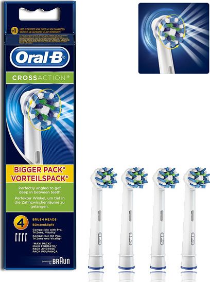 > Κάθε συσκευασία περιέχει 4 CrossAction Ανταλλακτικές Κεφαλές για την ηλεκτρική οδοντόβουρτσα Oral-B.